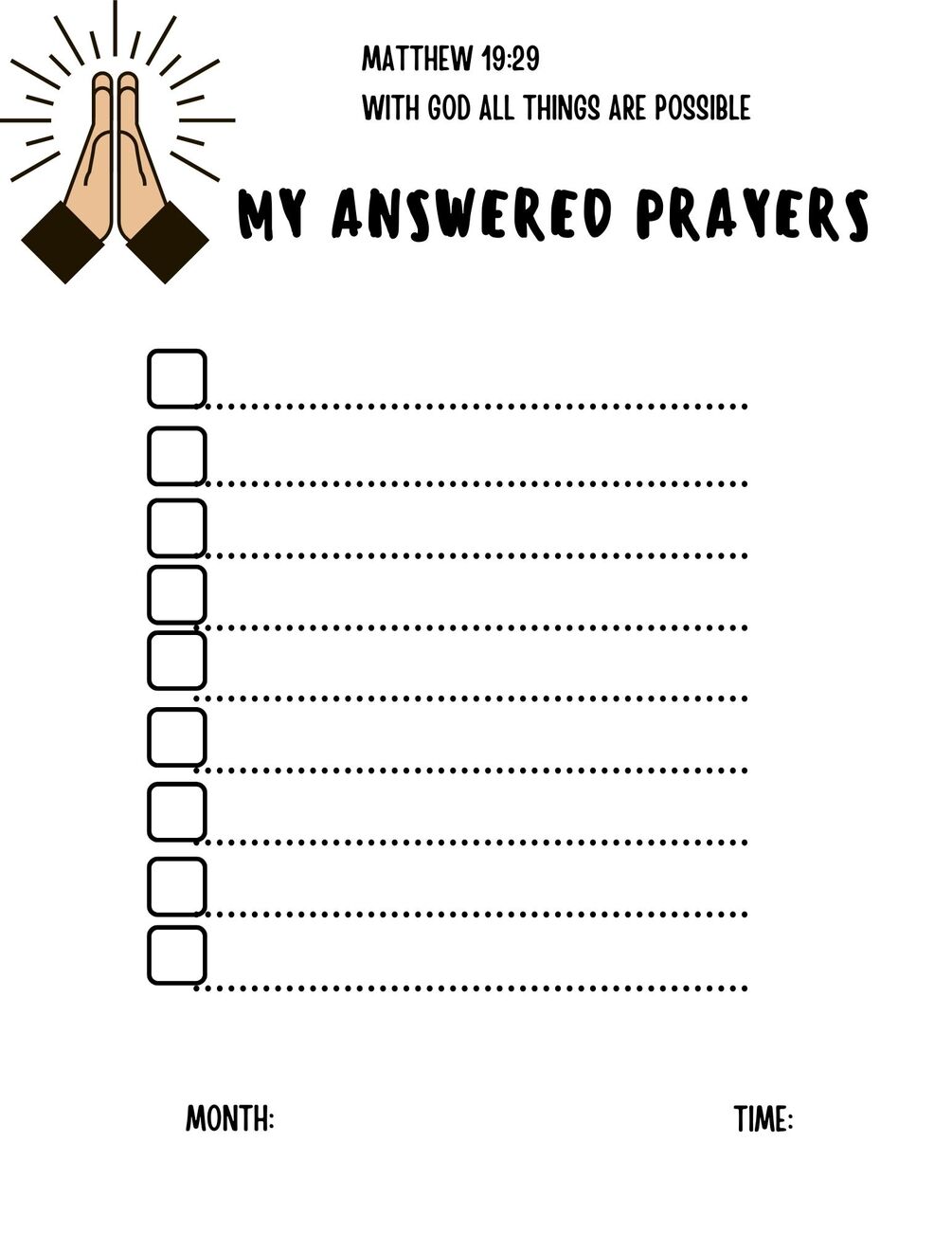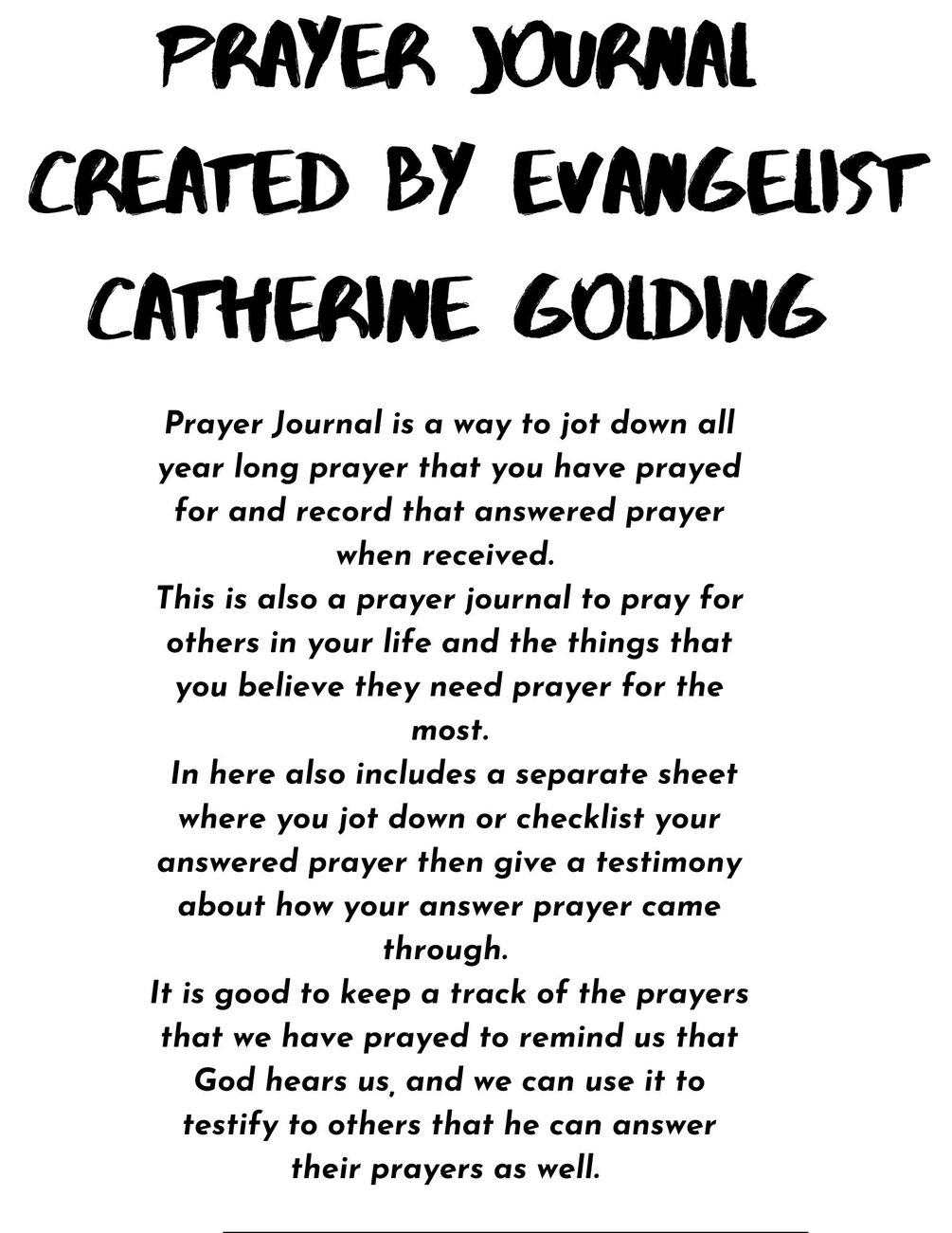 Prayer Journal is a way to jot down all year long prayer that you have prayed for and record that answered prayer when received.